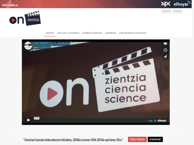 On Zientzia is a competition about scientific short videos. Their goal is is to promote the production and dissemination of short, original videos on science and technology subjects. We have renewed On Zientzia's website, using Wordpress.