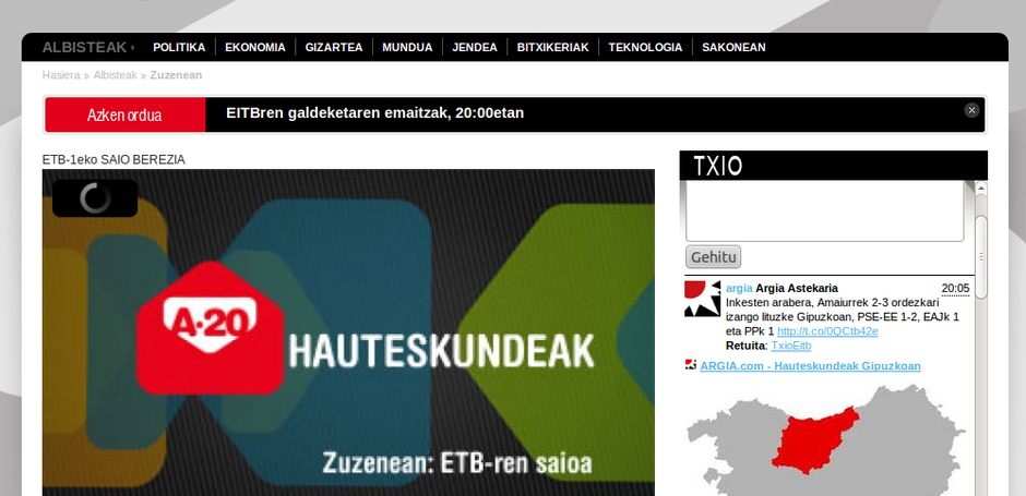 Txio, para seguimiento de eventos en directo en Eitb.com