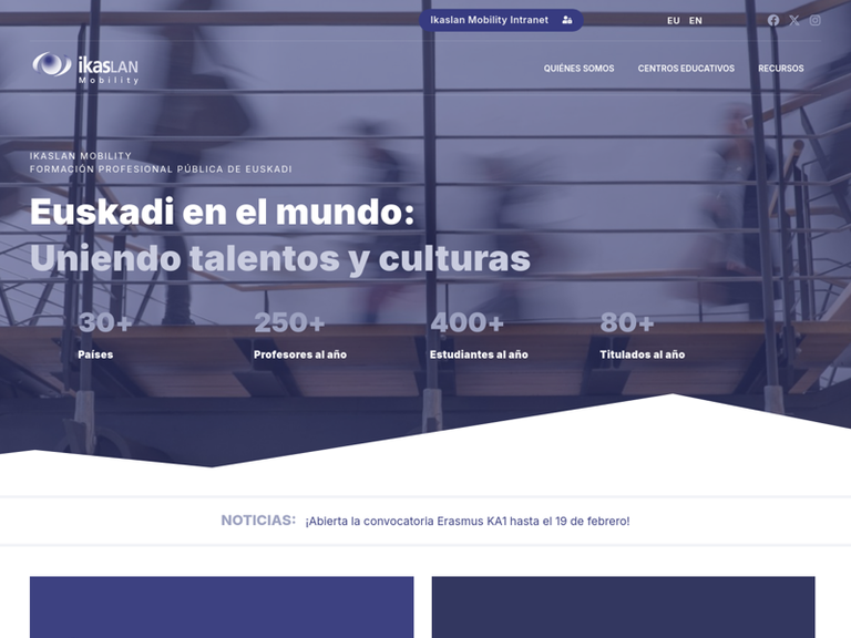 Ikaslan Mobility se creó en 2007 con el objetivo de fomentar la colaboración entre las instituciones educativas de la CAPV y dar respuesta a la creciente demanda de experiencias internacionales en materia de formación. En la nueva plataforma podéis encontrar la siguiente información: