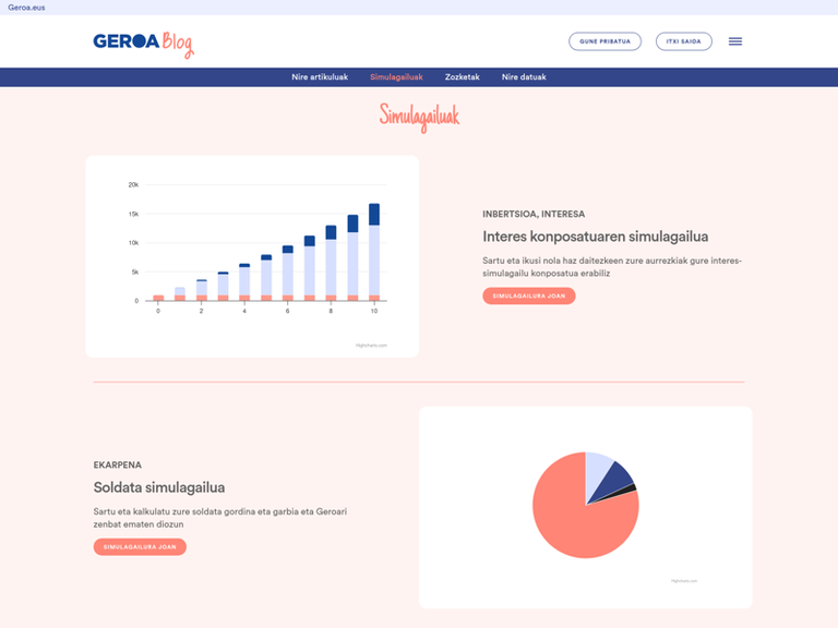 - Hipotekaren simulagailua: etxebizitza bat erosten pentsatzen bazaude, Geroaren simulagaiuarekin kalkulatu zenbat kostatuko zaizun hipoteka eta egin aurrekontu zehatzak.